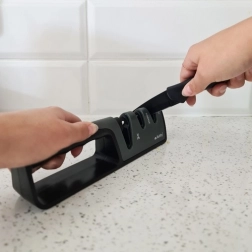 Dzięki kompaktowym wymiarom ostrzałkę łatwo przechowasz w szufladzie, a mimo to zawsze będzie pod ręką. Idealna do codziennej konserwacji narzędzi kuchennych, aby cięły szybko, precyzyjnie i bez wysiłku.