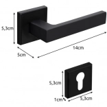 Zestaw wykonano z połączenia żelaza i aluminium dla idealnej równowagi wytrzymałości i masy. Docisk imbusowy umożliwia precyzyjne dociągnięcie i stabilność klamki, natomiast rozeta chroni okolice otworu zamka przed uszkodzeniami i zabrudzeniem. Kompletne opakowanie zawiera wszystko, co potrzebne do szybkiego i łatwego montażu.