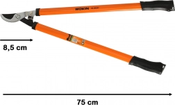 Dzięki ergonomicznym gumowym rękojeściom narzędzie pewnie leży w dłoni i minimalizuje zmęczenie podczas dłuższej pracy. Całkowita długość 750 mm umożliwia sięgnięcie do trudniej dostępnych miejsc i zapewnia lepszą kontrolę nad cięciem.