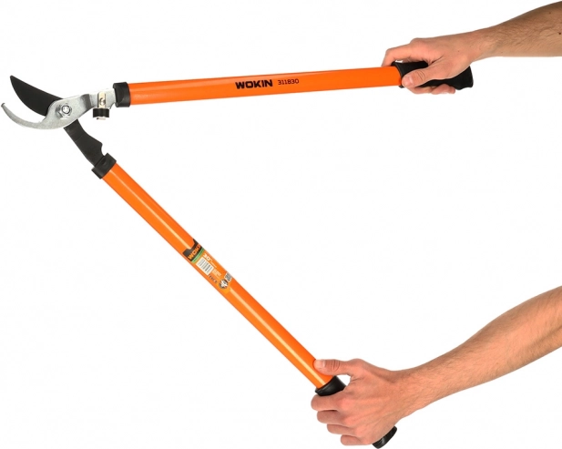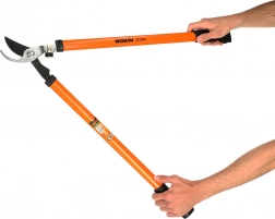 Całkowita długość 750 mm ułatwia cięcie grubszych gałęzi oraz pracę na wysokości bez drabiny.