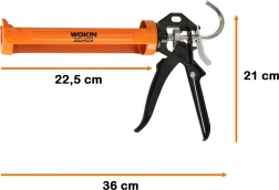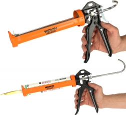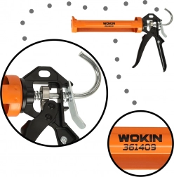 Uniwersalny wyciskacz WOKIN do kartuszy z silikonem, akrylem i klejami oferuje obrotowy korpus 360°, metalową konstrukcję oraz ergonomiczny uchwyt zapewniające precyzyjne i wygodne nakładanie mas uszczelniających podczas montażu, uszczelniania i prac wykończeniowych.