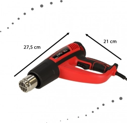 Oferuje dokładną regulację temperatury i 2 tryby pracy, co pozwala łatwo dostosować temperaturę do materiału, z którym pracujesz. Przepływ powietrza można łatwo regulować w zakresie od 300 do 500 l/min, co pozwala na efektywne i kontrolowane użycie.