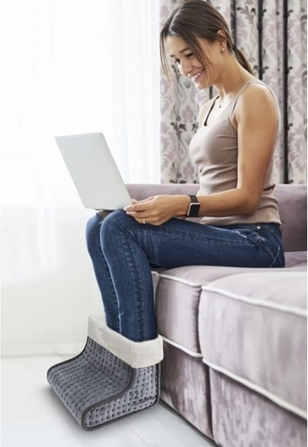 Ogrzewacz do stóp jest wykonany z miękkiego, pluszowego materiału, który zapewnia dodatkowy komfort i przyjemne doznania dotykowe.