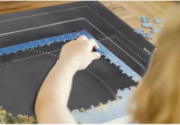Mata do puzzli jest wykonana z poliestru, co ułatwia jej zwijanie i przenoszenie. Pompowany wałek i trzy paski na rzep zapewniają, że wałek pozostanie na swoim miejscu.