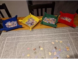 Zestaw zawiera cztery kieszonki do sortowania kawałków puzzli, które umożliwiają bezpieczne przechowywanie bez obawy o zgubienie.
