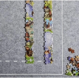 Spędź nieskończone godziny układając puzzle z tą wygodną i praktyczną matą do puzzli. Wykonana jest z poliestru, co czyni ją łatwą do składania i idealną do organizacji. W zestawie znajduje się wałek z PVC do łatwego zwijania oraz trzy paski, które trzymają puzzle na miejscu.