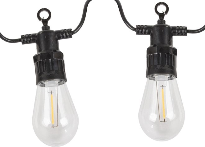 Ta ogrodowa girlanda LED jest idealna na co dzień i na wyjątkowe chwile. Przezroczyste klosze żarówek w stylu Edisona dają przyjemnie ciepły odcień i budują przytulne, ambientowe oświetlenie. Dzięki klasie szczelności IP44 nadaje się do użytku na zewnątrz przez cały sezon.