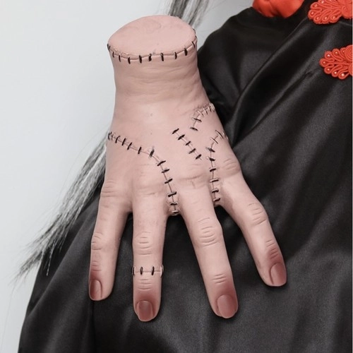 Dzięki rozmiarowi dorosłej dłoni i lekkiemu materiałowi rekwizytem łatwo się manipuluje i można go umieścić praktycznie wszędzie – na stole, półce lub jako uzupełnienie kostiumu grozy. Wierne detale i subtelnie zabarwione paznokcie podkreślają autentyczność bez potrzeby charakteryzacji czy specjalnych efektów.
