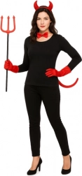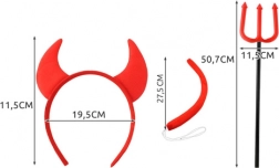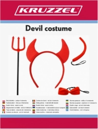 Rogi, mucha, ogon i trójząb – wszystko dopasowane w czerwonym kolorze, by od razu uzyskać diabelski look bez szukania dodatkowych akcesoriów.