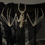 Stwórz upiorną atmosferę z realistycznym szkieletowym nietoperzem o długości 30 cm. Dzięki ruchomej głowie i szczęce, wiszącej pozycji głową w dół oraz autentycznemu, kostnemu wyglądowi jest idealny na Halloween, tematyczne imprezy, witryny sklepowe i do domowej dekoracji.