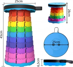To przenośne teleskopowe krzesełko to idealny towarzysz w podróży. Łatwo zmieścisz je w plecaku lub samochodzie i w kilka sekund przygotujesz do siedzenia. Dzięki solidnemu mechanizmowi bezpiecznie blokuje się na wymaganej wysokości, zapewniając stabilne i wygodne miejsce do siedzenia w dowolnym miejscu.