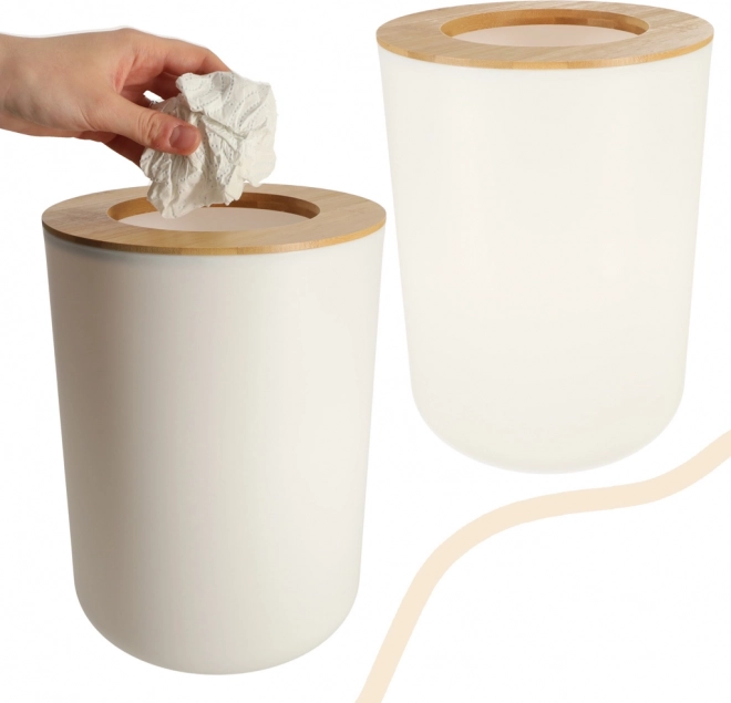 Szukasz spójnego i gustownego kompletu akcesoriów do łazienki? Ten 6‑elementowy zestaw w minimalistycznym stylu łączy praktyczne zastosowanie i estetyczny wygląd. Biała powierzchnia z bambusowymi akcentami nadaje przestrzeni przyjemny, naturalny charakter i ułatwia utrzymanie porządku.