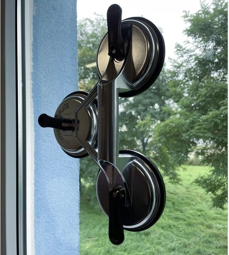Trzy duże przyssawki rozkładają obciążenie i umożliwiają manipulację ciężkimi oraz kruchymi panelami bez ryzyka uszkodzeń.