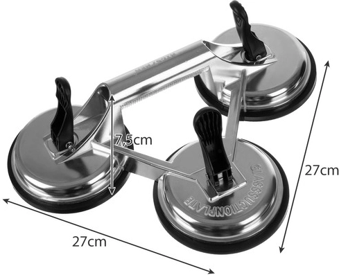 Ta solidna aluminiowa potrójna przyssawka BIGSTREN to idealny wybór dla monterów, szklarzy i majsterkowiczów. Trzy duże gumowe przyssawki 120 mm z mechanicznym dźwigniowym dociskiem zapewniają silne i stabilne mocowanie na gładkich, nieporowatych powierzchniach, takich jak szkło, metal, glazura czy lakierowane drewno.
