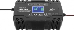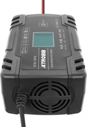 Kompaktowa i wydajna ładowarka akumulatorów XTROBB dla 12 V i 24 V z inteligentnym sterowaniem mikroprocesorowym. Oferuje automatyczne wykrywanie napięcia, impulsowy tryb naprawczy do ożywiania uszkodzonych lub zasiarczonych baterii oraz kompleksową ochronę przed odwrotną polaryzacją, zwarciem, przeładowaniem i przegrzaniem. Dzięki panelowi dotykowemu i wyświetlaczowi LCD obsługa jest łatwa i przejrzysta. Idealna do samochodów, motocykli, kosiarek i łodzi.