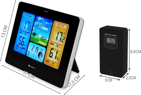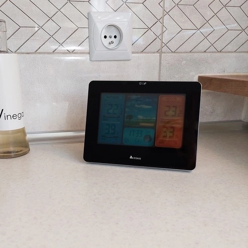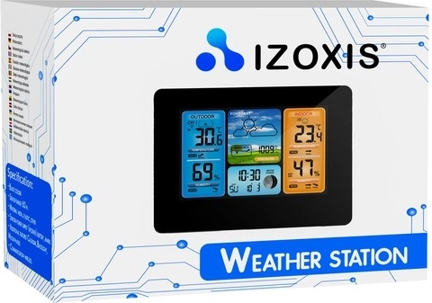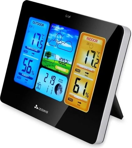 Nowoczesna bezprzewodowa stacja pogodowa IZOXIS z kolorowym i czytelnym wyświetlaczem LCD mierzy temperaturę i wilgotność wewnątrz i na zewnątrz, wyświetla ciśnienie, tendencje pogody oraz fazy Księżyca. Dzięki zewnętrznemu czujnikowi z zasięgiem do 60 m zyskasz wiarygodny przegląd warunków przy domu. Nie brakuje prognozy na 12–24 godziny, alarmu temperaturowego, zegara i daty oraz praktycznego podświetlenia dla łatwego odczytu w dzień i w nocy.
