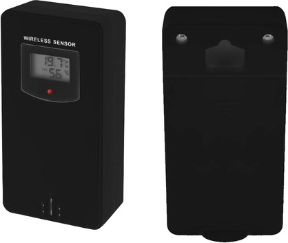 Wytrzymały czujnik przesyła wartości temperatury i wilgotności do jednostki głównej. Posiada własny wyświetlacz do szybkich odczytów bezpośrednio na zewnątrz.