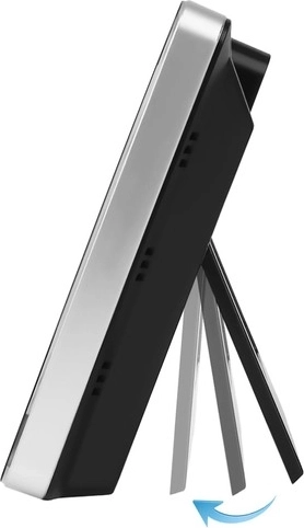 Bezprzewodowy czujnik zewnętrzny przesyła dane na odległość do 60 metrów, więc z łatwością umieścisz go na balkonie, tarasie lub w ogrodzie. Stacja jednocześnie wyświetla wartości wewnętrzne i zewnętrzne, prognozuje rozwój pogody na 12–24 godziny oraz ostrzega o spadku poniżej ustawionej temperatury. Podświetlenie może być stałe przy zasilaniu kablem lub oszczędne na bateriach z tymczasowym włączeniem po dotknięciu.