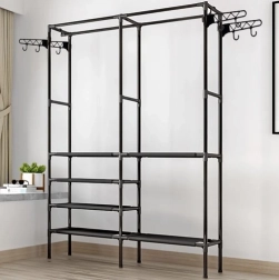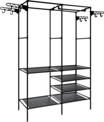 Praktyczny i stabilny stojak na ubrania w stylu loft oferuje pojemną przestrzeń do przechowywania na garderobę i akcesoria. Wyposażony w 6 półek, drążek na ubrania oraz 8 bocznych haczyków, dzięki czemu z łatwością utrzymasz porządek w domu. Lekka, a jednocześnie solidna metalowa konstrukcja umożliwia szybkie przenoszenie i łatwy montaż, a trwałe materiały łatwo się czyści.