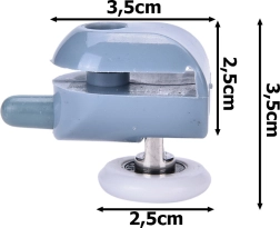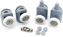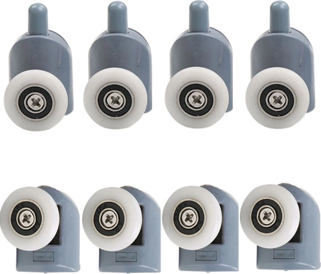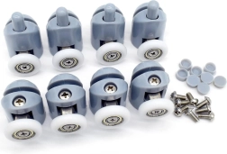 Zestaw zawiera osiem kółek, które umożliwiają płynny i bezproblemowy ruch drzwi prysznicowych. Każde kółko posiada solidną konstrukcję z tworzywa sztucznego i stali.