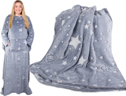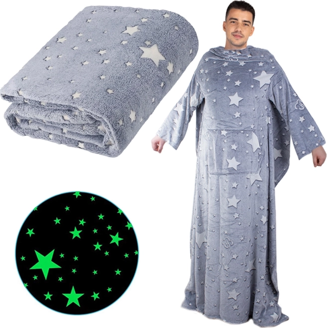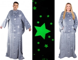 Zaprojktowany z przestronnymi rękawami, które zapewniają swobodę ruchu, koc nie zsuwa się na podłogę jak zwykłe koce. Dodatkowo jego fluorescencyjne właściwości sprawiają, że świeci w ciemności – idealnie tworząc wyjątkową atmosferę w domu.