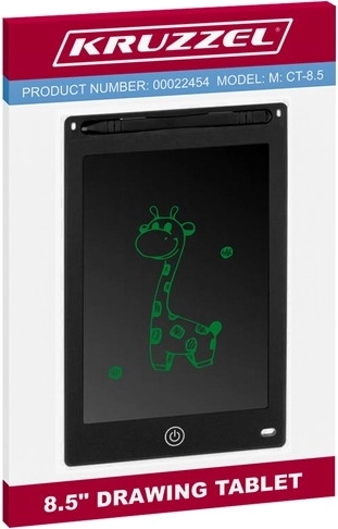 Tablet do rysowania Kruzzel jest wyposażony w ekran o przekątnej 8,5", który reaguje na dotyk dowolnym przedmiotem, nawet paznokciem. Nad ekranem znajduje się uchwyt na ołówek do rysowania, co umożliwia wygodne przechowywanie.