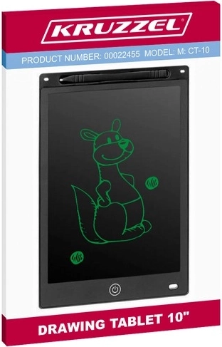 Kruzzel XL tablet do rysowania jest doskonałym narzędziem do kreatywnego wyrażania się i użytecznym pomocnikiem do notatek lub rysunków. Ekran tabletu tworzy obraz na bazie nacisku, co czyni go idealną pomocą dla dzieci dzięki jego niezniszczalności i odporności na uderzenia. Bez potrzeby papieru chroni środowisko, ponieważ jest używany wielokrotnie.