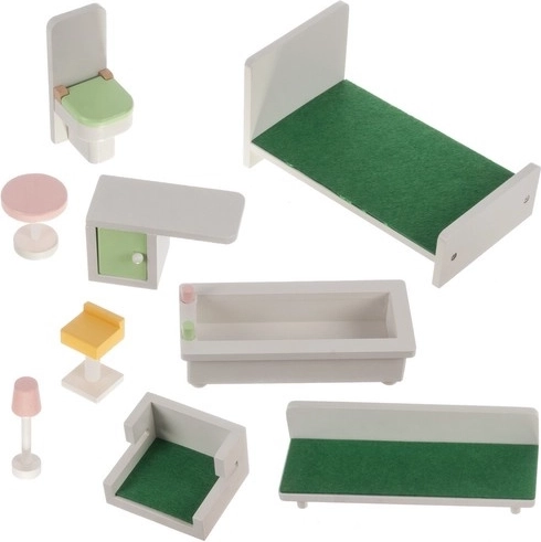 - Winda + WYPOSAŻENIE W ZESTAWIE - dodatkową funkcją tego domku jest winda, która porusza się w górę i w dół za pomocą korbki, oraz wyposażenie. Domek posiada łóżko, toaletkę, WC, wannę, sofę, fotel, stolik, wieszak, lampę i schody.