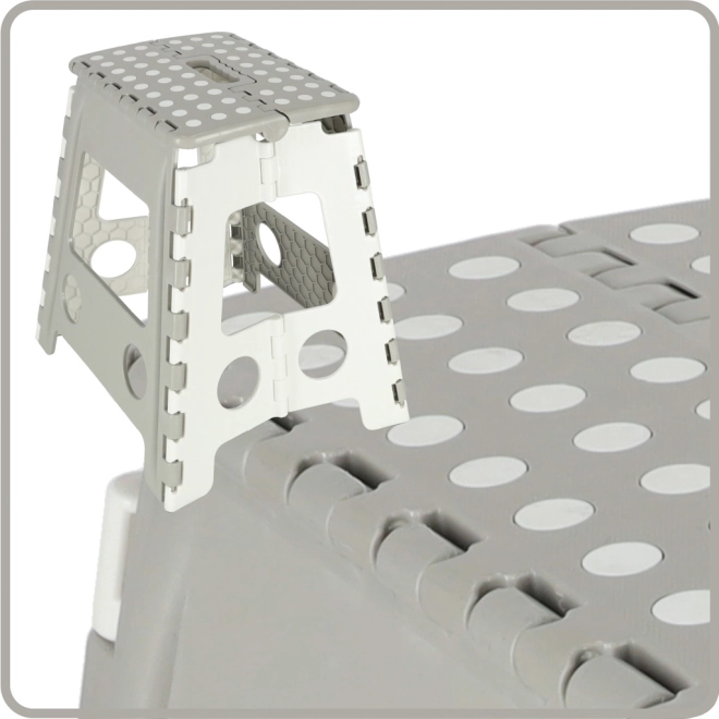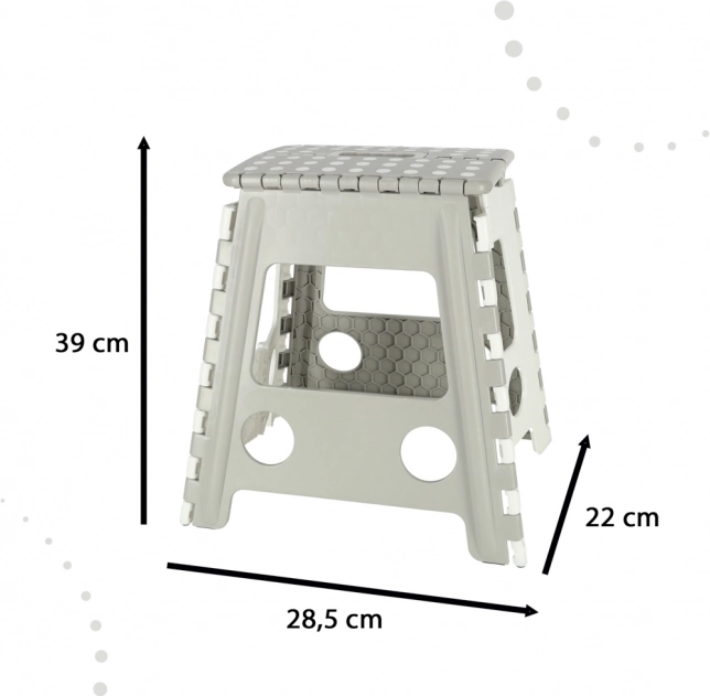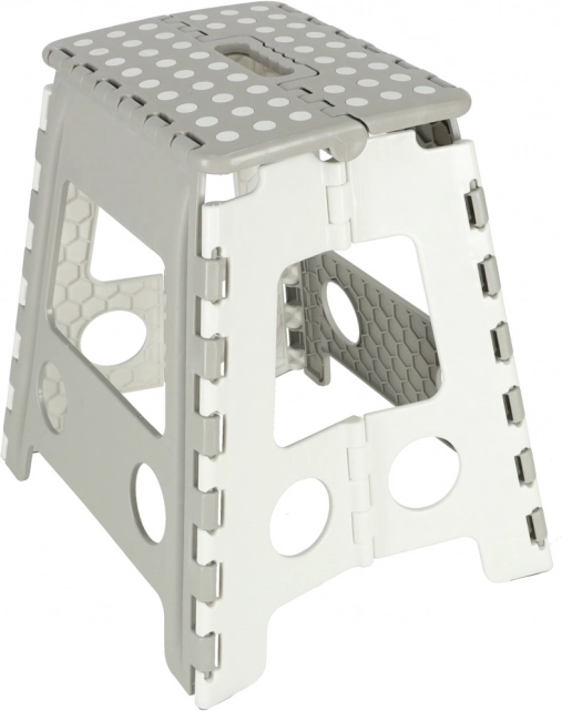 Praktyczny składany stołek to idealny pomocnik do kuchni, garderoby i warsztatu. Zapewnia pewny krok podczas sięgania po górne półki i szafki, a dzięki antypoślizgowej górnej powierzchni użytkowanie jest bezpieczne. Wytrzymała plastikowa konstrukcja gwarantuje stabilność i udźwig 150 kg.