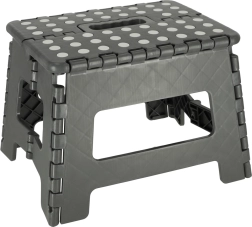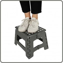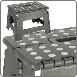Ten kompaktowy składany stołek to świetny pomocnik wszędzie tam, gdzie potrzebujesz szybko uzyskać stabilne podparcie lub niskie siedzisko. Lekka i wytrzymała konstrukcja z tworzywa sztucznego łatwo się składa i rozkłada, a dzięki antypoślizgowej górnej powierzchni oraz solidnej podstawie zapewnia bezpieczne użytkowanie.