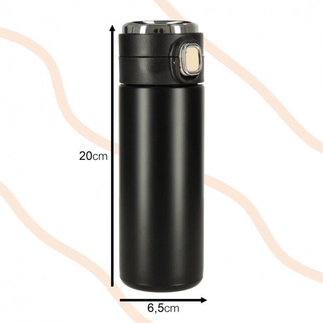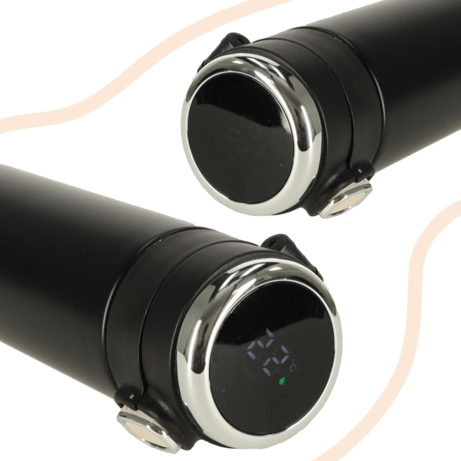 Wyświetlacz LED w pokrywce pokazuje aktualną temperaturę napoju wewnątrz kubka, co z pewnością przyciągnie uwagę otoczenia. Stonowane czarne wykończenie dodaje stylu i przyciąga spojrzenia.