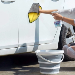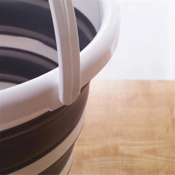 Składane wiadro 10 l wykonane jest z wytrzymałego i grubego silikonu, który po obwodzie został wzmocniony dla większej stabilności. Górny rant i dno wykonane są z solidnego plastiku, dzięki czemu wiadro trzyma kształt i jest wygodne w użytkowaniu.