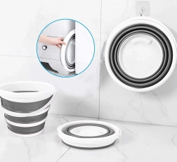 Po złożeniu wiadro ma wysokość ok. 5 cm, więc łatwo mieści się w szafce, bagażniku auta czy kamperze. Praktyczny uchwyt i otwór do zawieszenia ułatwiają przenoszenie oraz przechowywanie.
