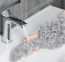 Miotełek jest łatwo zmywalny pod bieżącą wodą, co ułatwia jego konserwację i zapewnia długotrwałą czystość.