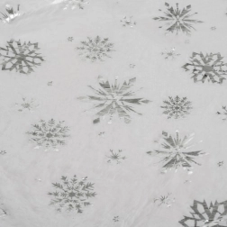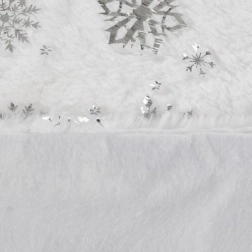 Spódnica jest ozdobiona srebrnymi płatkami śniegu i gwiazdkami, co dodaje uroku Twojej świątecznej dekoracji.