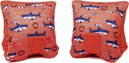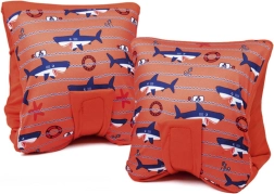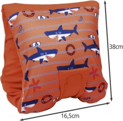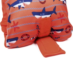Żywe pomarańczowe wykonanie z wesołymi rekinami zachęca dzieci do spędzania czasu w wodzie i zwiększa widoczność.