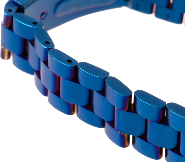 Ulepsz swój opaskę stylową metalową bransoletą w intensywnie niebieskim kolorze. Wysokiej jakości stal nierdzewna z konstrukcją z ogniw zapewnia wytrzymałość, wygodę i reprezentacyjny wygląd, który sprawdzi się zarówno w pracy, jak i w czasie wolnym.