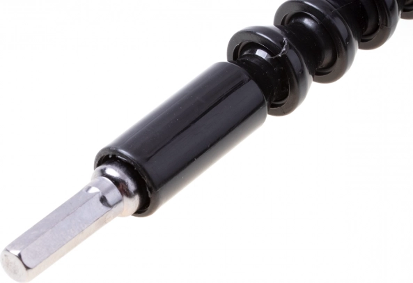 Doskonałe i wyjątkowo elastyczne przedłużenie do bitów! To niezbędny dodatek do Twojej wiertarki lub wkrętaka, zwłaszcza w sytuacjach, gdy musisz coś wkręcić w trudno dostępnym miejscu. Dzięki konstrukcji składającej się ze sprężyn i kulek łożyskowych możesz zginać nasadkę w obie strony praktycznie pod dowolnym kątem i dotrzeć ze śrubą wszędzie tam, gdzie zechcesz.