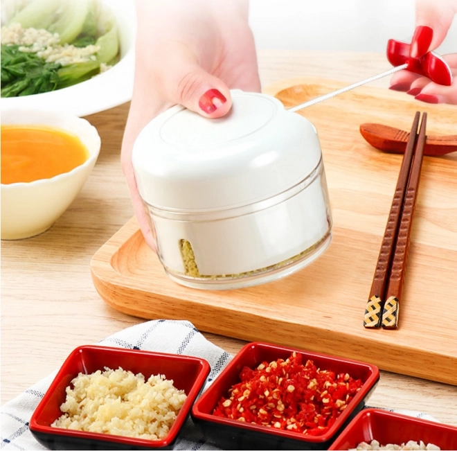 Wzbogac swoją kuchnię o praktyczny ręczny siekacz do czosnku i cebuli, który poradzi sobie z siekaniem nie tylko czosnku i cebuli, ale także ziół, owoców i warzyw. Jego stalowe ostrza zapewniają szybkie i precyzyjne siekanie, co oszczędza czas na przygotowanie składników.