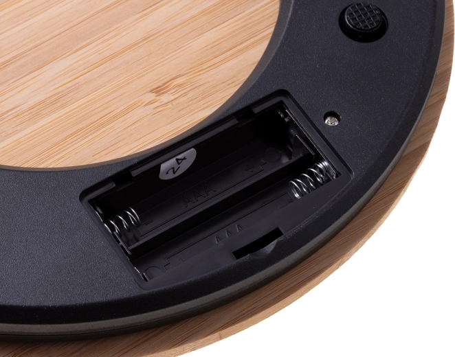 Ta ekologiczna waga przywróci naturę do Twojej kuchni dzięki gładkiej bambusowej powierzchni połączonej z wytrzymałą plastikową podstawą dla długotrwałej niezawodności. Do zasilania potrzebne są dwie baterie AAA.