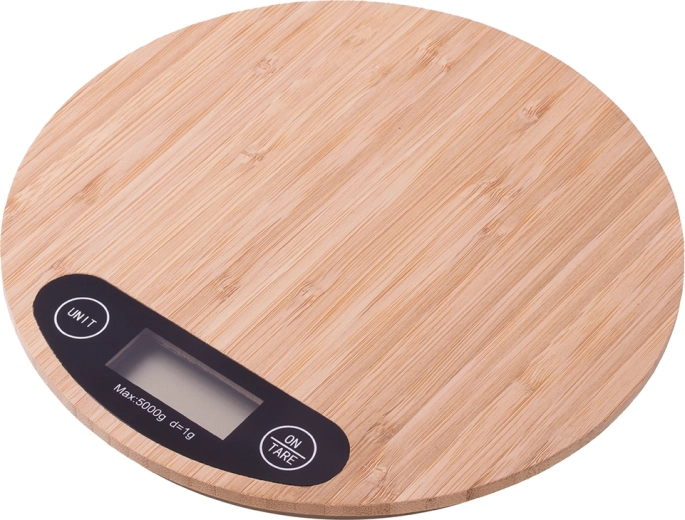 Naturalna bambusowa powierzchnia nadaje wadze estetyczny wygląd i stanowi przyjemny dodatek do każdej kuchni.