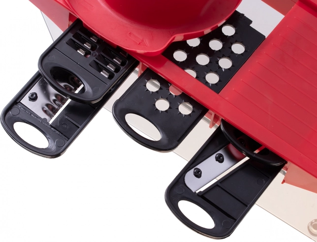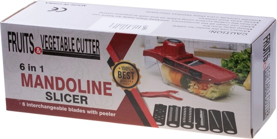 Krajalnica jest wykonana z trwałego plastiku i stali nierdzewnej, co zapewnia długą żywotność. Stabilna konstrukcja i ergonomiczny design ułatwiają manipulację.