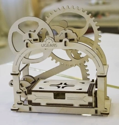 Odkryj magię mechaniki z elegancką drewnianą szkatułką od UGEARS. Ten mechaniczny model 3D bez kleju otwiera się automatycznie po naciśnięciu dźwigni i zamienia się w praktyczną przestrzeń na wizytówki, spinacze lub drobne skarby. Precyzyjne wykonanie, płynna praca przekładni i zabawny montaż ucieszą początkujących i miłośników techniki.