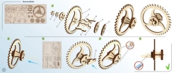 Model składa się bez użycia kleju, elementy są precyzyjnie wycięte i uzupełnione instrukcją obrazkową. Przy właściwym nasmarowaniu zalecanych części zwykłym woskiem ze świecy zapewniona jest płynna i niezawodna praca. Złożona szkatułka jest nie tylko dekoracyjna, ale przede wszystkim w pełni funkcjonalna – idealna do gabinetu i salonu.