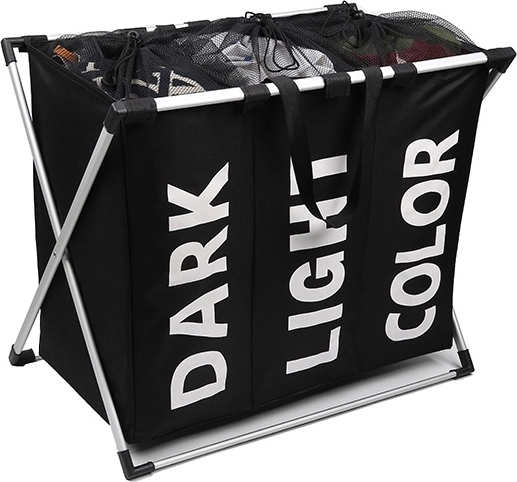 Efektywne rozwiązanie dla każdego domu, gdzie chcesz mieć pranie zorganizowane. Potrójny kosz na pranie oferuje trzy oddzielne komory oznaczone dla różnych kolorów prania – ciemne, jasne i kolorowe. Dzięki lekkiej konstrukcji z aluminiowego stopu kosz jest łatwo przenośny i wytrzymały.