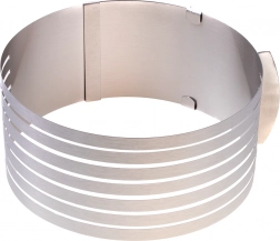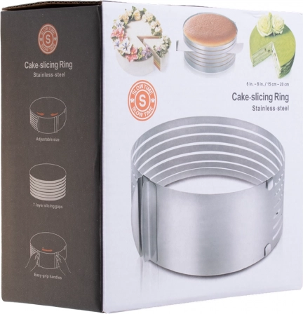 Pierścień pozwala ustawić średnicę między 15 a 20 cm, co zwiększa elastyczność w użyciu do różnych rozmiarów tortów.