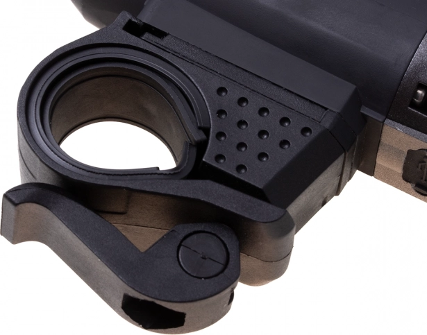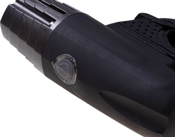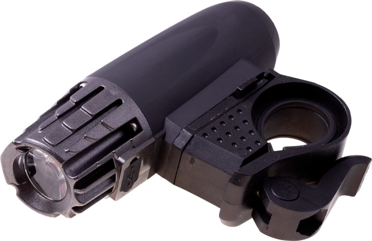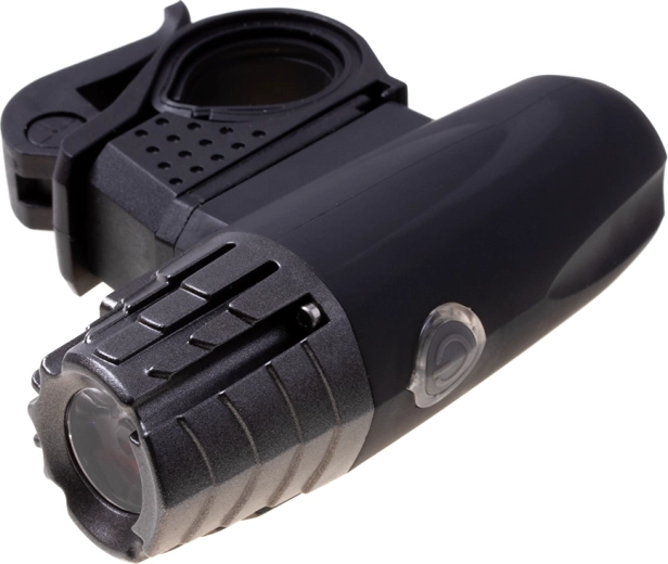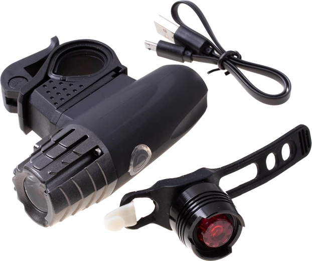 Lampkę można łatwo zdjąć z uchwytu i używać jako latarki ręcznej. Tylna czerwona lampka, będąca częścią zestawu, jest wysokiej jakości i posiada silikonowy uchwyt do montażu na sztycy siodła lub ramie roweru. Wyposażona w wyjątkowo jasną diodę LED 30 lm oraz trzy funkcje świecenia: światło ciągłe i miganie w dwóch częstotliwościach.