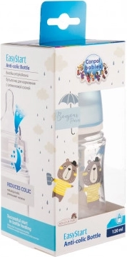 Profilowana antykolkowa butelka EasyStart z ekskluzywnej kolekcji BONJOUR, PARIS! o pojemności 120 ml, którą bardzo łatwo napełniać, myć i wygodnie trzymać podczas karmienia. Stworzona dla zadowolonego brzuszka Twojego maluszka. Więcej informacji o butelkach BONJOUR, PARIS! znajdziesz w tym filmie: https://www.youtube.com/watch?v=fBLIQfbLKoQ Szeroka szyjka ułatwia napełnianie i mycie, a wyraźna skala kontrolę wypitej ilości. Zawiera antykolkowy smoczek 0m+, którego kształt maksymalnie przypomina pierś mamy. Dzięki temu umożliwia łączenie karmienia piersią z karmieniem butelką. W butelce zamkniętej dyskiem uszczelniającym możesz mrozić pokarm lub transportować go bez ryzyka wylania. Butelka nie zawiera BPA. Wymienne smoczki i ustniki znajdziesz w dziale smoczki i ustniki. Uroczy nadruk w stylu francuskim – unikalny design. Nowy zawór antykolkowy zapobiega tworzeniu się pęcherzyków powietrza w mleku, minimalizuje kolkę, połykanie powietrza i gromadzenie gazów. Smoczek swoim kształtem przypomina brodawkę mamy – ułatwia łączenie karmienia piersią z karmieniem butelką. Szeroki otwór ułatwia napełnianie butelki, a precyzyjna skala – łatwy odczyt wypitej ilości. Wysokiej jakości polipropylen (PP) oraz produkcja na japońskich maszynach zapewniają wysoką jakość, bezpieczeństwo i przezroczystość butelki. Butelka wyprodukowana w UE. Instrukcja użycia: Ze względów higienicznych przed pierwszym użyciem dokładnie umyj wszystkie rozmontowane części butelki i smoczek, a następnie sterylizuj je we wrzącej wodzie przez 5 minut. Myj przed każdym użyciem. Dłuższe gotowanie lub twarda woda mogą powodować osady. Po użyciu usuń resztki pokarmu z butelki i smoczka, przepłucz, umyj, a następnie sterylizuj w sterylizatorze parowym/elektrycznym lub we wrzącej wodzie. Nie zalecamy mycia butelki i smoczka w zmywarce, ponieważ stosowane detergenty mogą uszkodzić produkt. Nie używaj żadnych chemicznych środków dezynfekujących. Przed każdym użyciem sprawdź stan produktu. Zwróć szczególną uwagę na smoczek, gdy u dziecka pojawią się pierwsze ząbki. Sprawdź jakość smoczka, dokładnie rozciągając go we wszystkich kierunkach. Przy pierwszych oznakach zużycia lub uszkodzenia nie używaj produktu dalej – wymień na nowy. Nie dokręcaj zbyt mocno zakrętki, ponieważ smoczek może nieprawidłowo się odpowietrzać. Sprawdź, czy pokarm nie wycieka spod zakrętki. Nie nakłuwaj i nie powiększaj otworów w smoczku – możesz go uszkodzić. Jeśli podgrzewasz pokarm w kuchence mikrofalowej, pamiętaj, że butelka musi być otwarta. Zachowaj szczególną ostrożność przy podgrzewaniu w mikrofalówce. Zawsze dokładnie wymieszaj podgrzany pokarm i sprawdź jego temperaturę przed podaniem dziecku. Nie pozostawiaj smoczka na bezpośrednim słońcu, w pobliżu źródeł ciepła ani w środkach do sterylizacji dłużej, niż jest to zalecane – może to osłabić smoczek. Ze względów higienicznych i bezpieczeństwa zalecamy wymianę smoczka co 3 miesiące. Ważne! Dla bezpieczeństwa i zdrowia Twojego dziecka! Używaj wyłącznie pod bezpośrednim nadzorem osoby dorosłej. Nigdy nie używaj smoczka jako smoczka uspokajającego. Długotrwałe i regularne ssanie płynów może powodować wady szkliwa zębów dziecka. Zawsze sprawdzaj temperaturę podawanego pokarmu. Produkt nie jest zabawką. Wszystkie elementy produktu przechowuj poza zasięgiem dziecka. Butelka dla niemowląt spełnia wymagania: Rozporządzenia Parlamentu Europejskiego i Rady 1935/2004/WE – ogólne wymagania dotyczące materiałów i wyrobów przeznaczonych do kontaktu z żywnością; Rozporządzenia Komisji (UE) nr 10/2011 w sprawie materiałów i wyrobów z tworzyw sztucznych przeznaczonych do kontaktu z żywnością; EN 14350-1 – Wyroby do pielęgnacji dzieci – Wyposażenie do picia – Część 1: Wymagania ogólne i mechaniczne oraz badania; EN 14350-2 – Wyroby do pielęgnacji dzieci – Wyposażenie do picia – Część 2: Wymagania chemiczne i badania