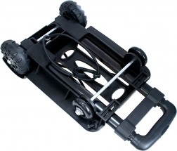Najważniejszą cechą tego wózka jest specjalna konstrukcja teleskopowa, która umożliwia złożenie go do kompaktowych rozmiarów. Po złożeniu ma wymiary tylko 45 cm x 23 cm x 8 cm, co ułatwia jego przechowywanie i transport. Można go łatwo schować do bagażnika samochodu, spiżarni lub w inne miejsce.