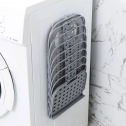 Wiszący kosz/organizator na pranie jest przydatny w małej łazience, gdzie nie ma miejsca na stały kosz. Praktycznym sposobem można go zawiesić na drzwiczkach każdej szafki lub pralki.